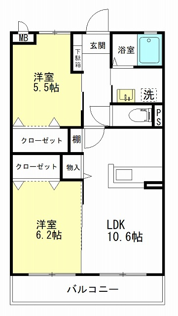 2LDK 55.29m2 ( 16.72坪 ) |